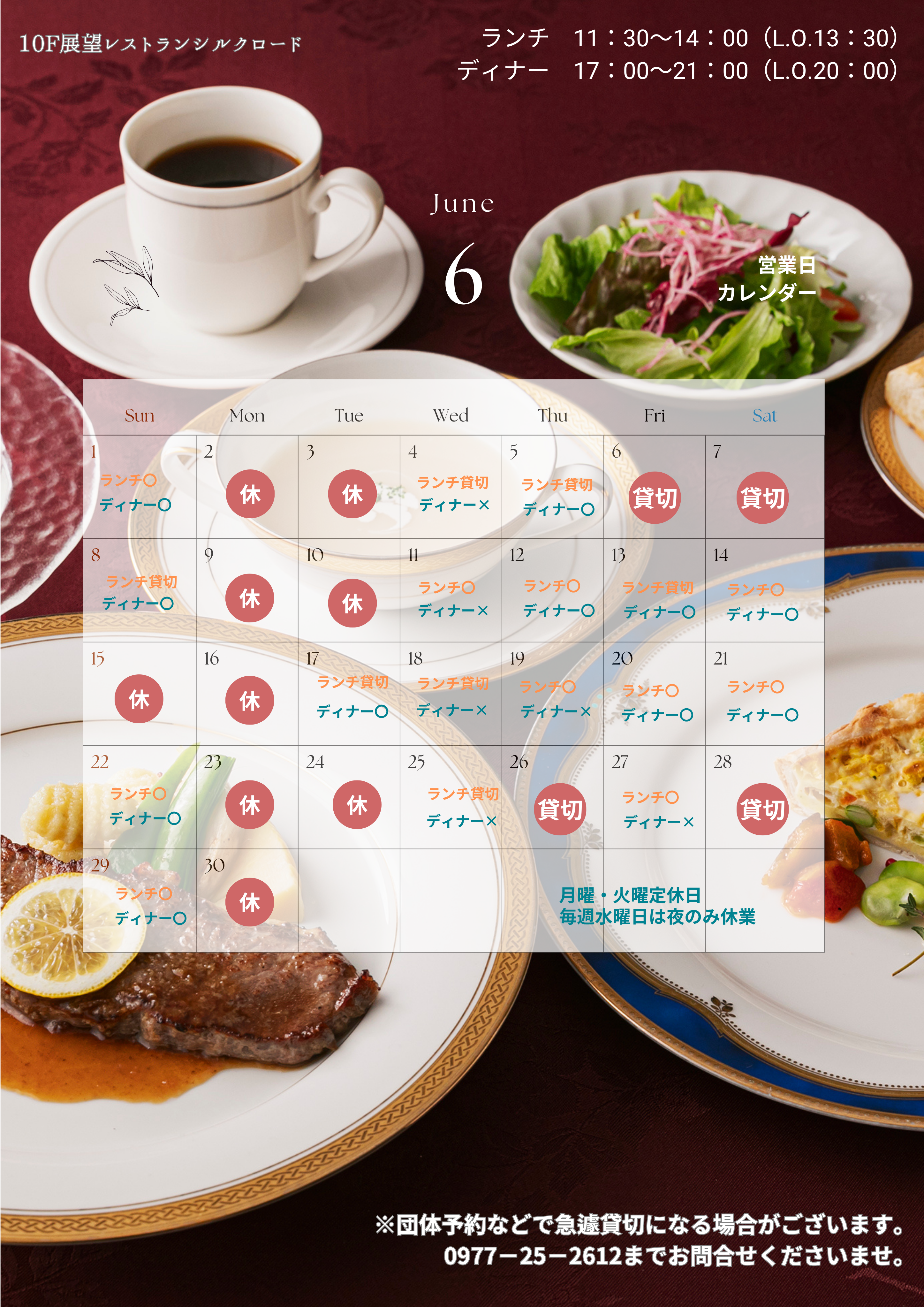 6月レストラン営業日 「10F展望レストランシルクロード」